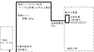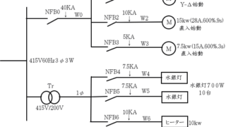 例題 3相 200V 7.5Kw の3相誘導電動機を増設するこ とになった。 条件として、直入れ始動、動力盤からの距離45m 配線方式は金属管工事、配線はCVケーブルとす る。 分岐回路のケーブルサイズ   配管サイズ […]