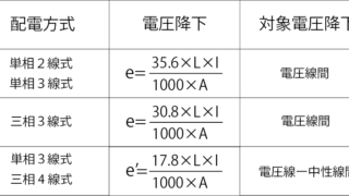今回の疑問   簡略計算式の係数ってなに? 計算方法ってどうするの?   結論 直流方式の係数は次の式により求められています 1相3線式、3相4線式の場合 1/58(抵抗率)×100/97(伝導率) […]